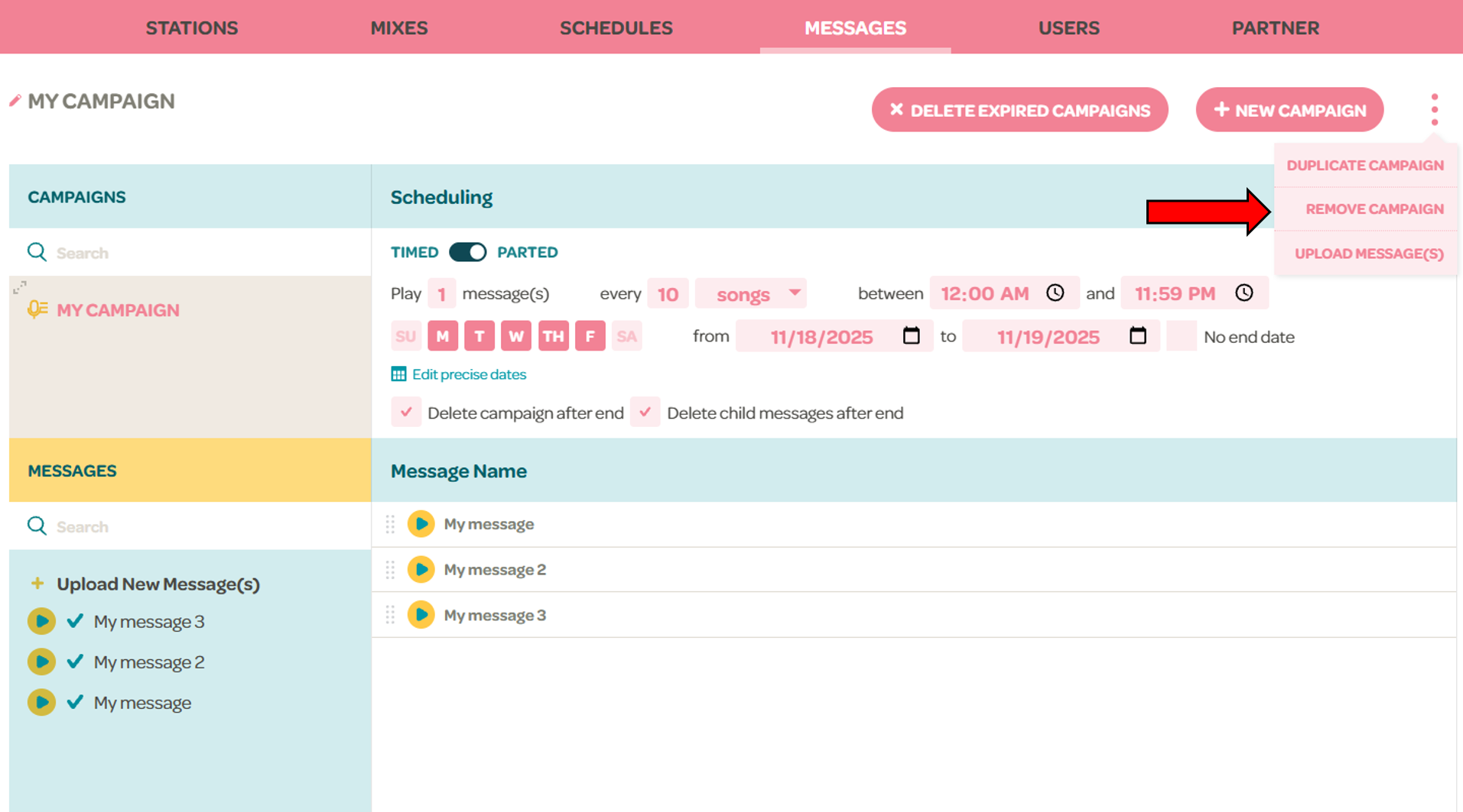 If this option is selected, you will also have the option to delete all the messages that were used in the campaign.