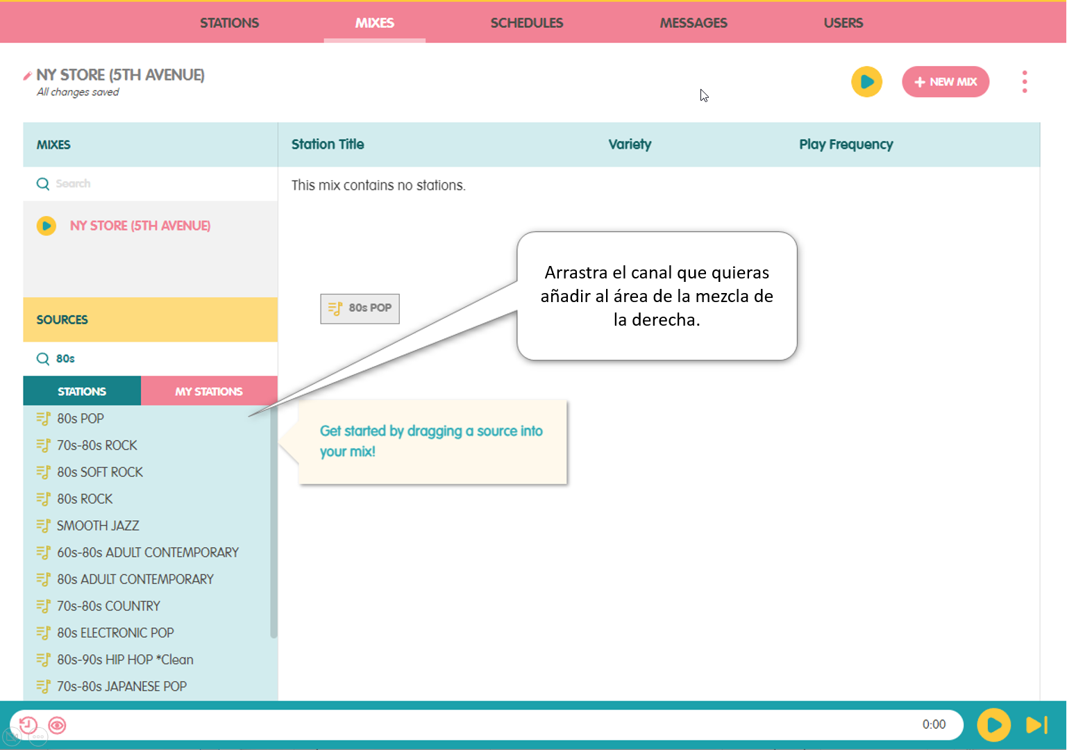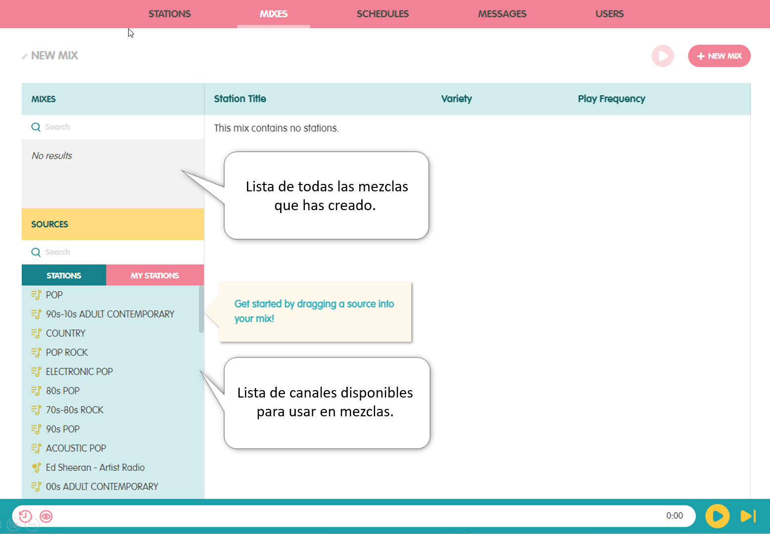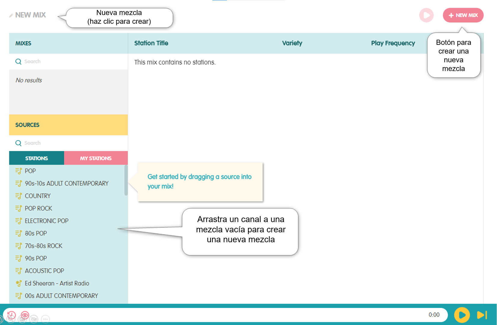 Puedes decidir cómo distribuir la variedad y la frecuencia de reproducción de cada canal dentro de la mezcla.