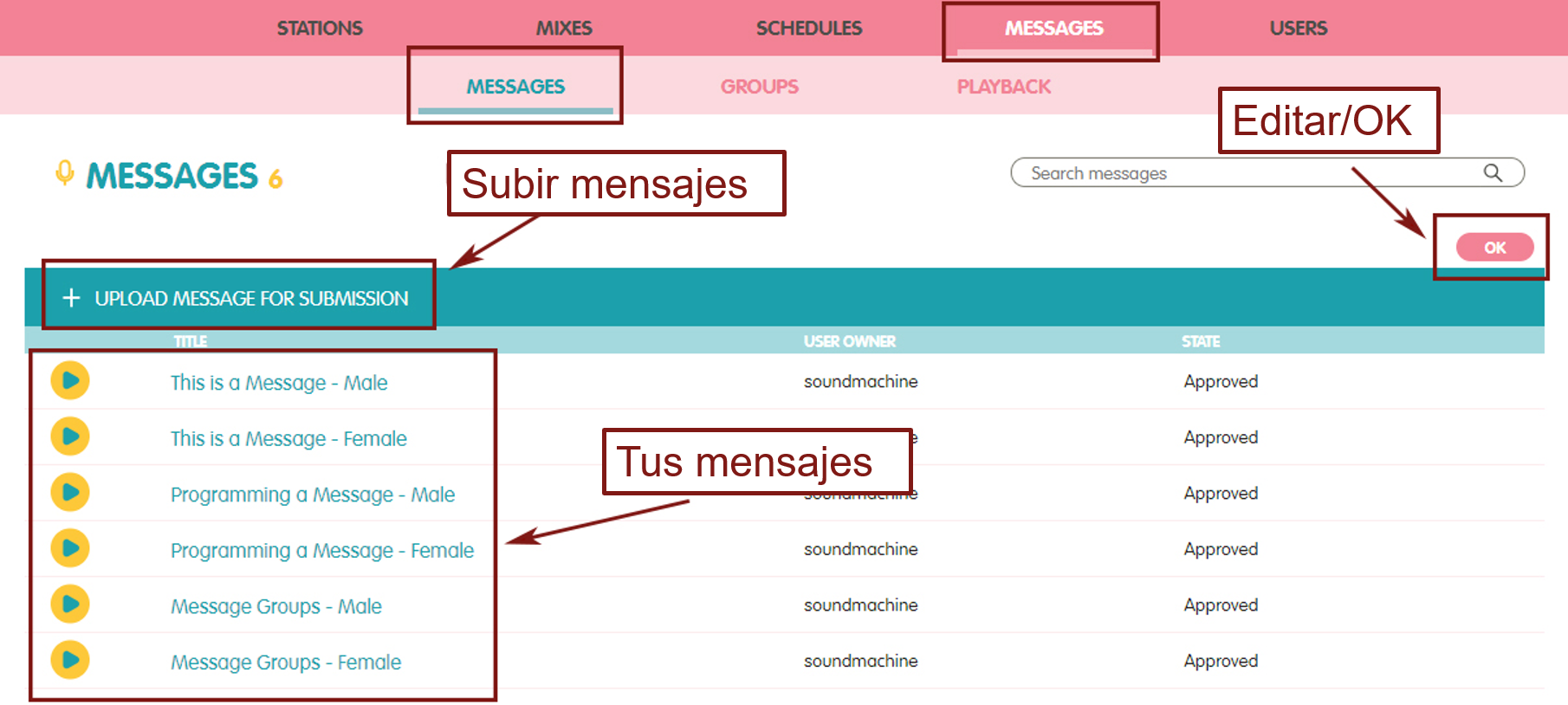 - Tu mensaje aparecerá como “Pending” hasta que sea aprobado por el equipo de SoundMachine.