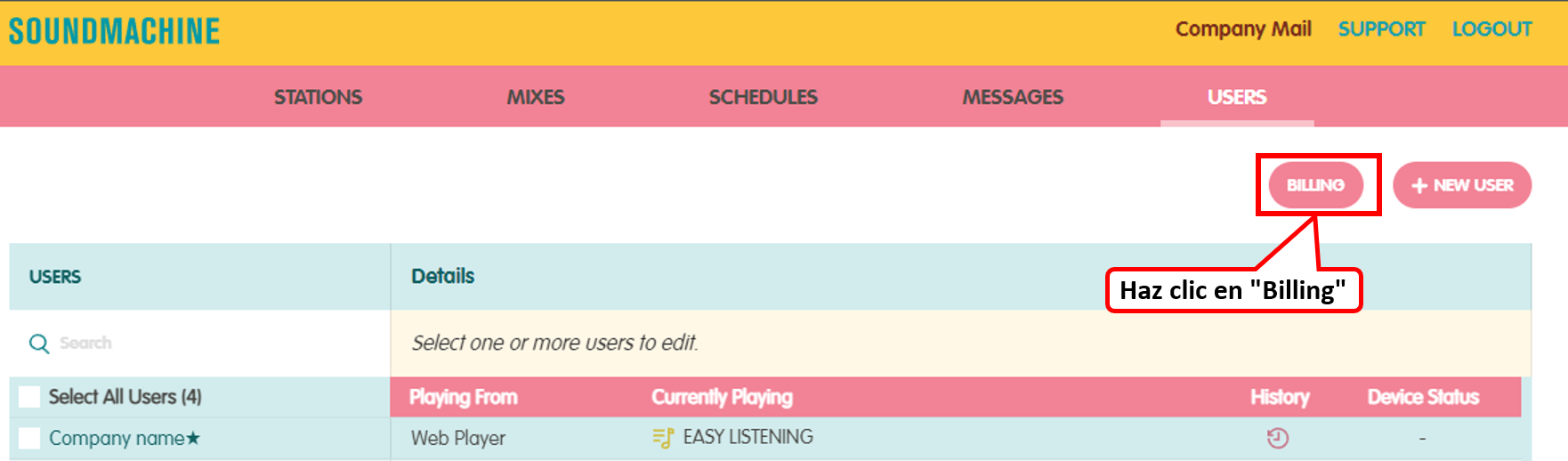 Nota: Si quieres comprar un reproductor pero no ves el enlace "Billing", por favor contactanos con: